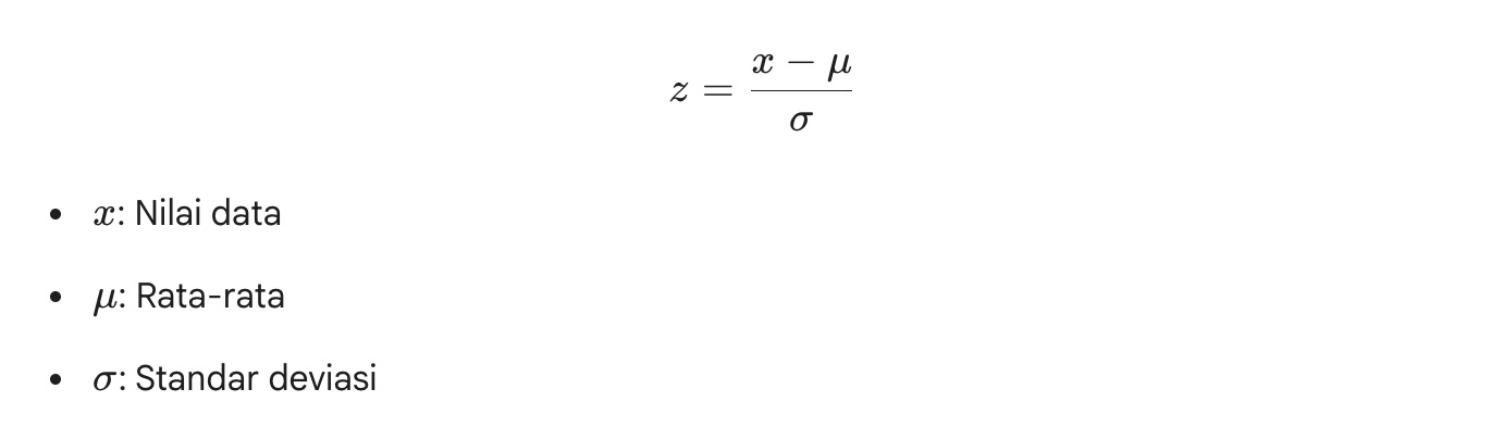 Agen akan menghitung skor anomali. Salah satu metode yang digunakan adalah Z-Score untuk melihat seberapa jauh sebuah data melenceng dari rata-rata:
